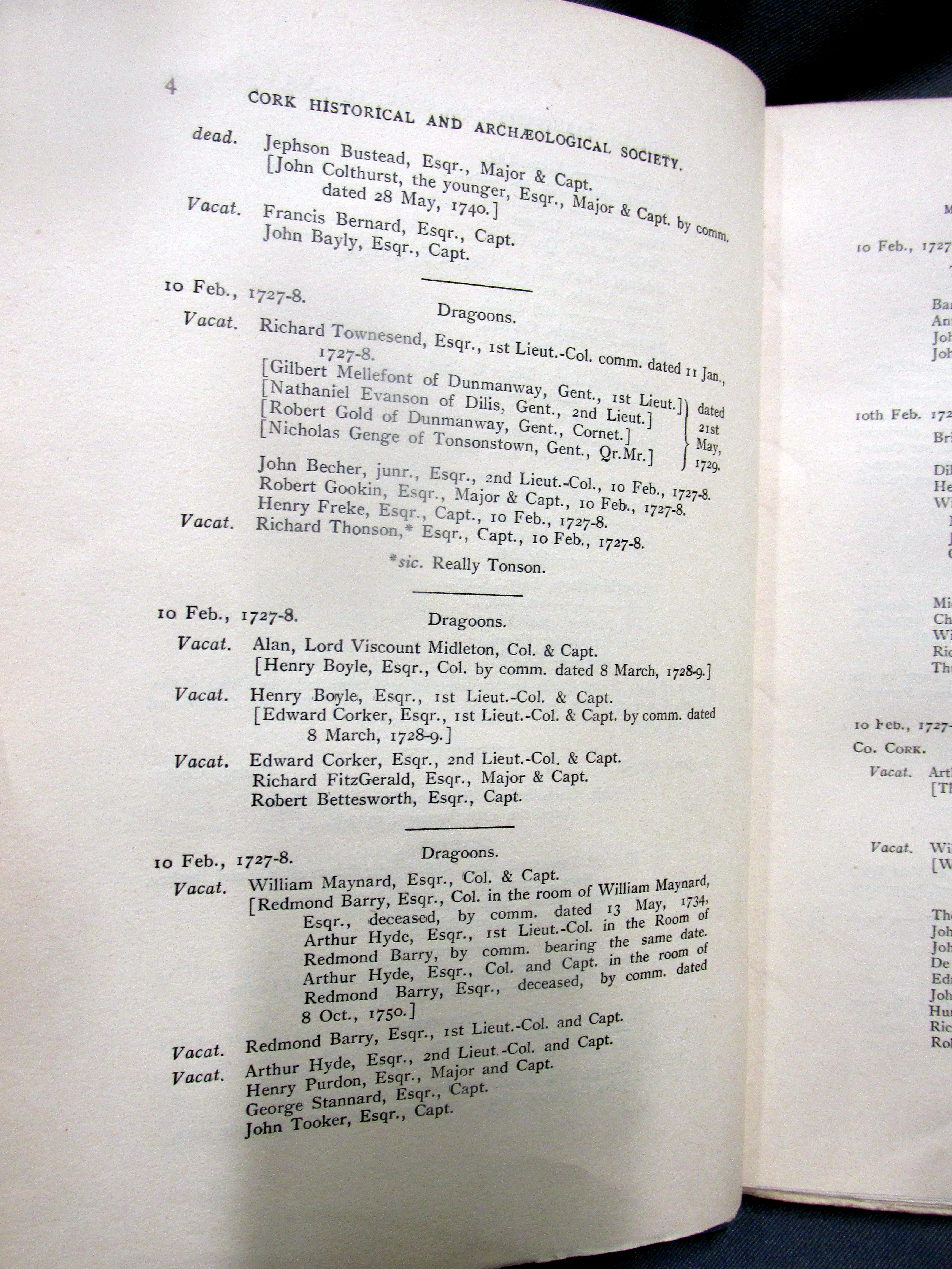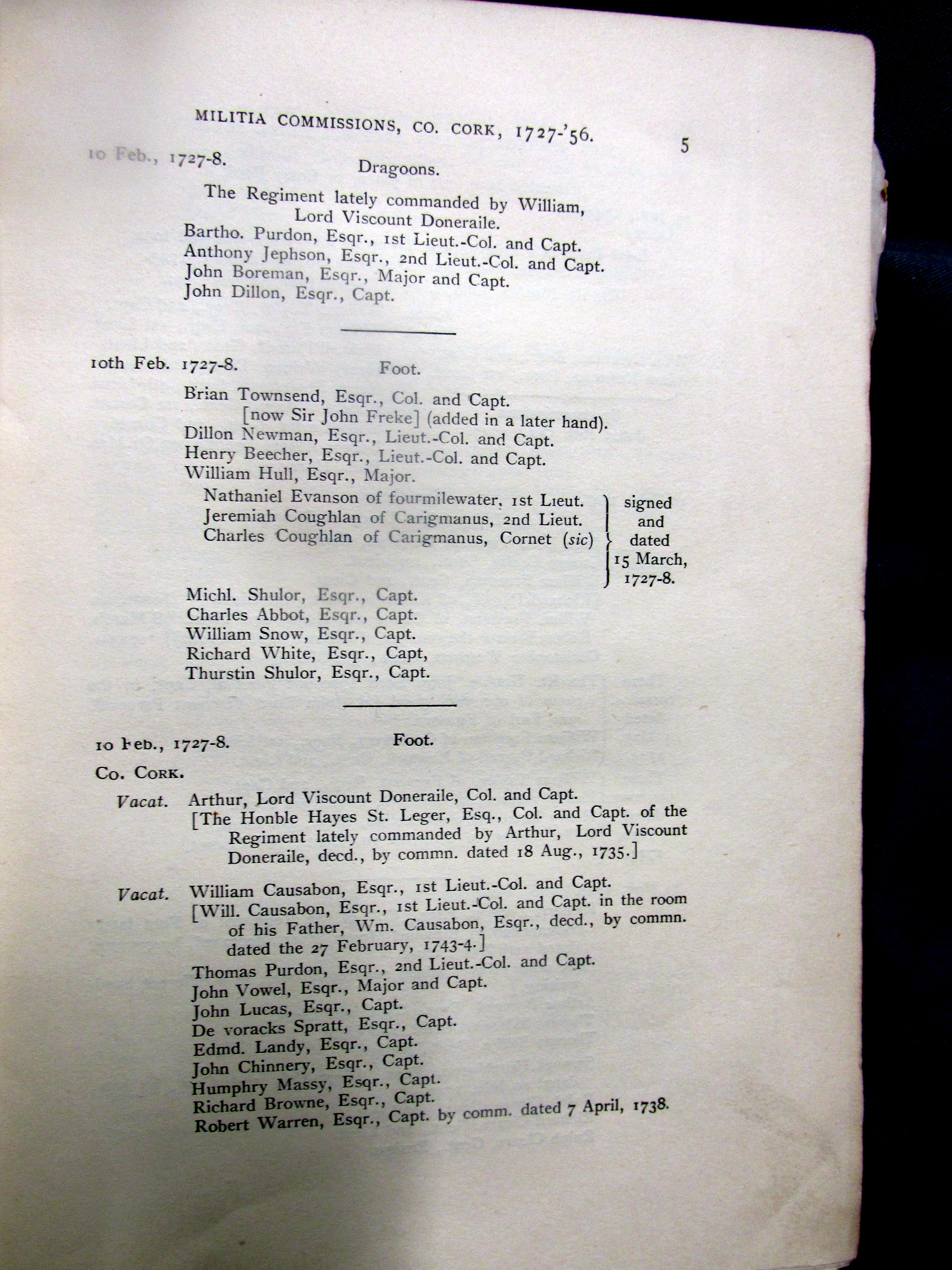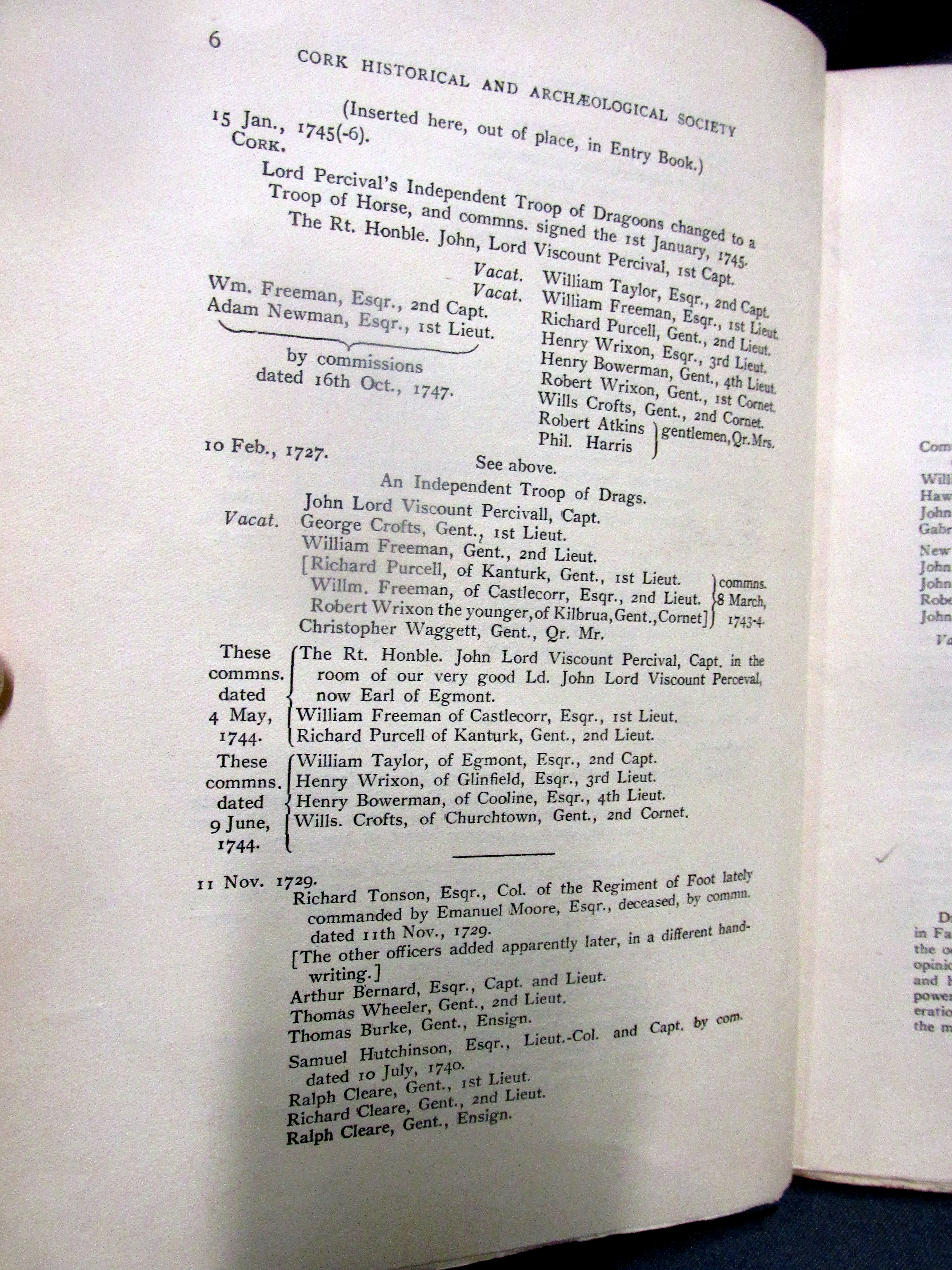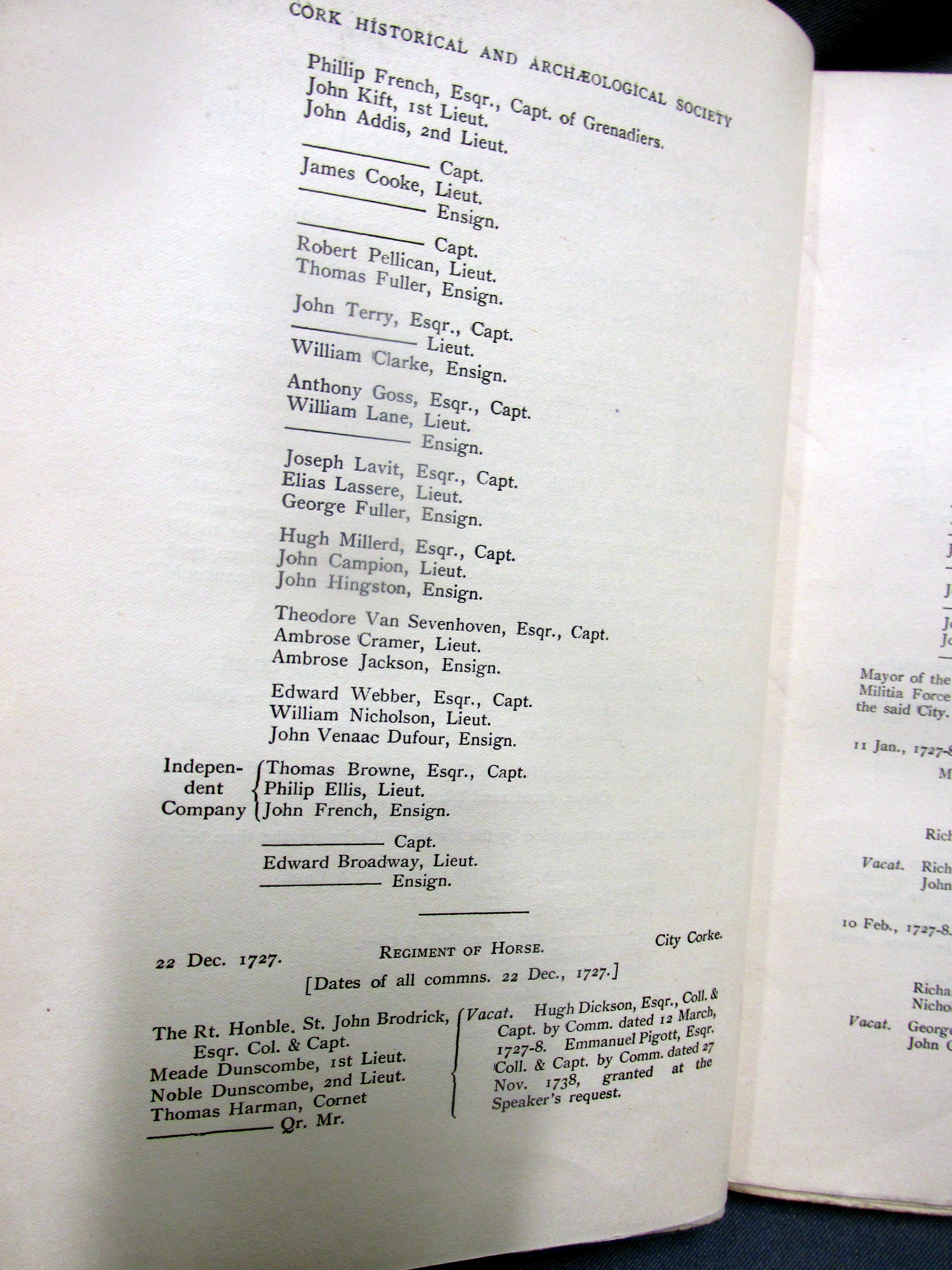 Some Militia Commissions and Extracts from Proclamations of Dublin Gazette for Co. Cork, 1727-1756, Copied from Public Records Office, Dublin before their Destruction in 1922 by Rev. Henry R.Swanzy, MA, MRIA.