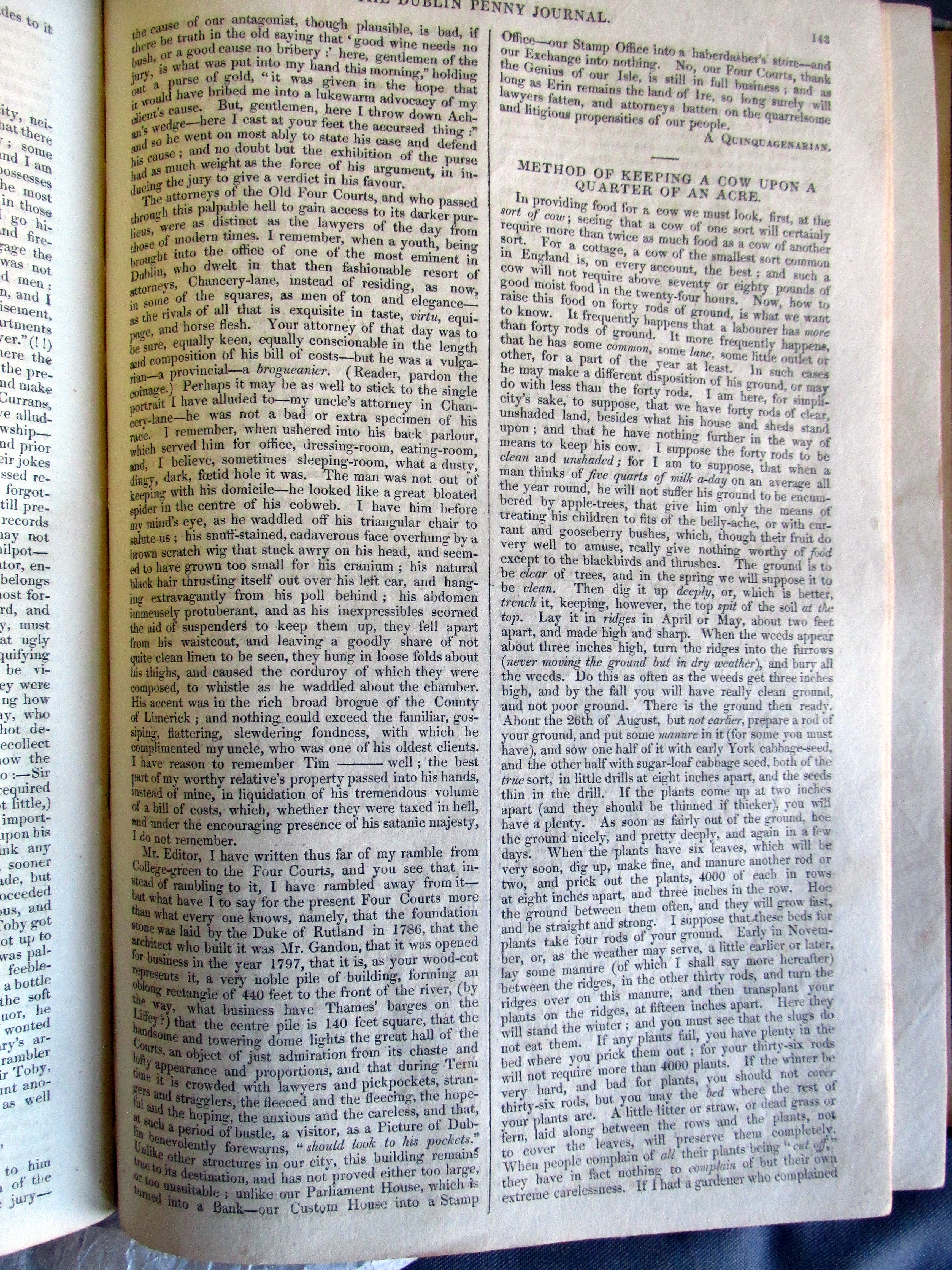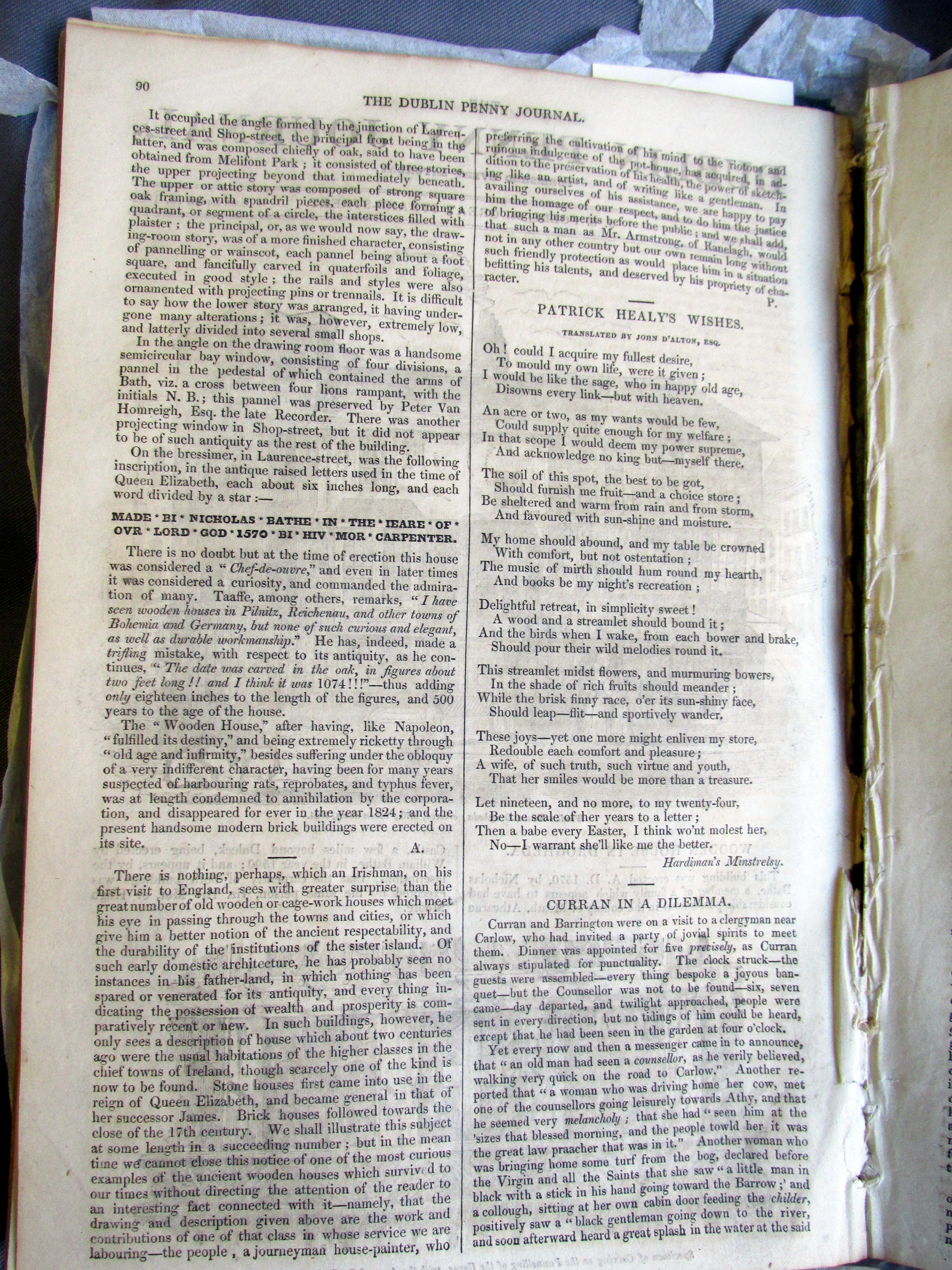 From 1832 Dublin Penny Journal in a book of the weekly issues owned by Dublin writer Sean O’Casey.