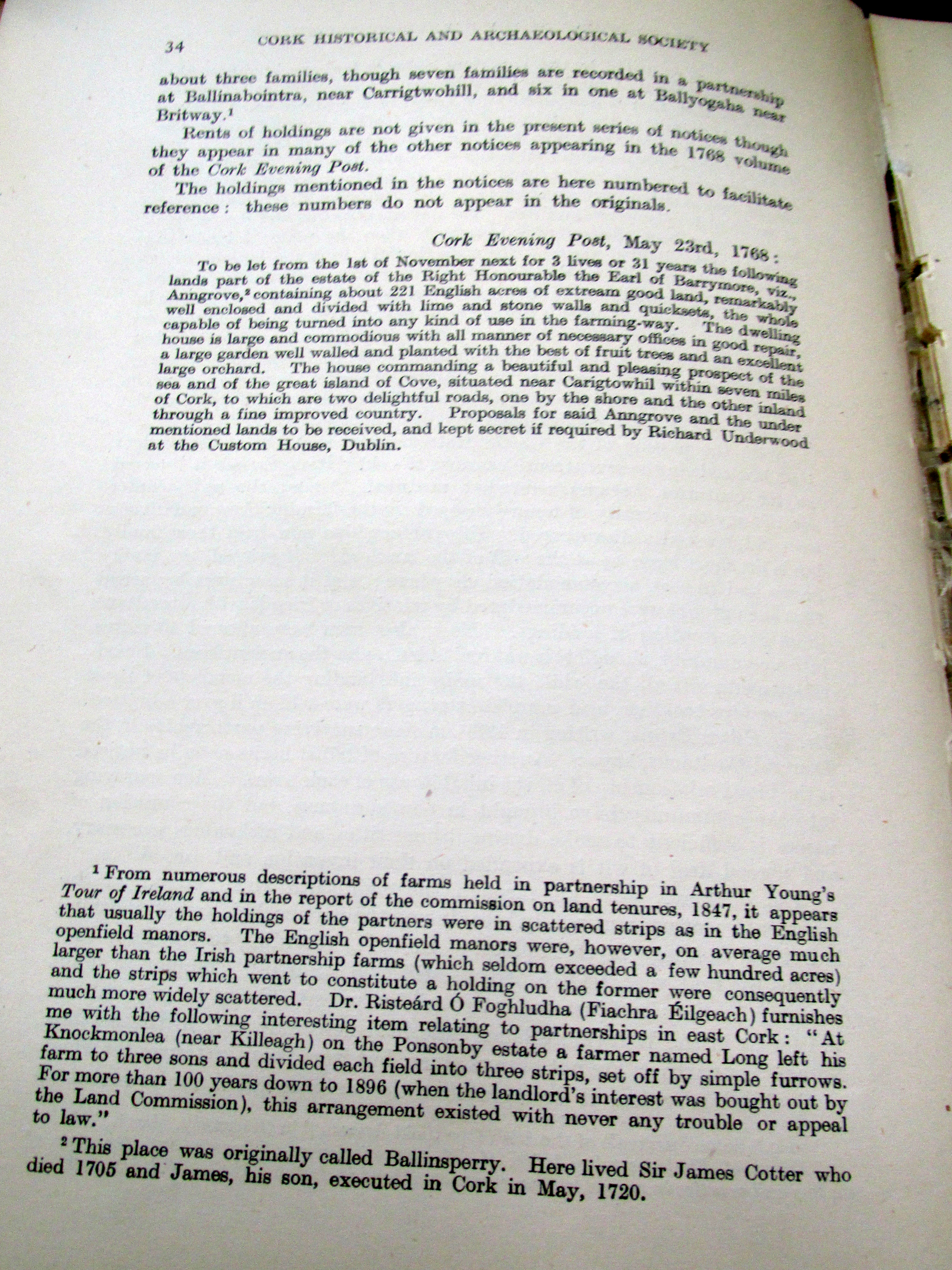 He makes the interesting point that such information was published for other estates in Co. Cork in that and other newspapers.