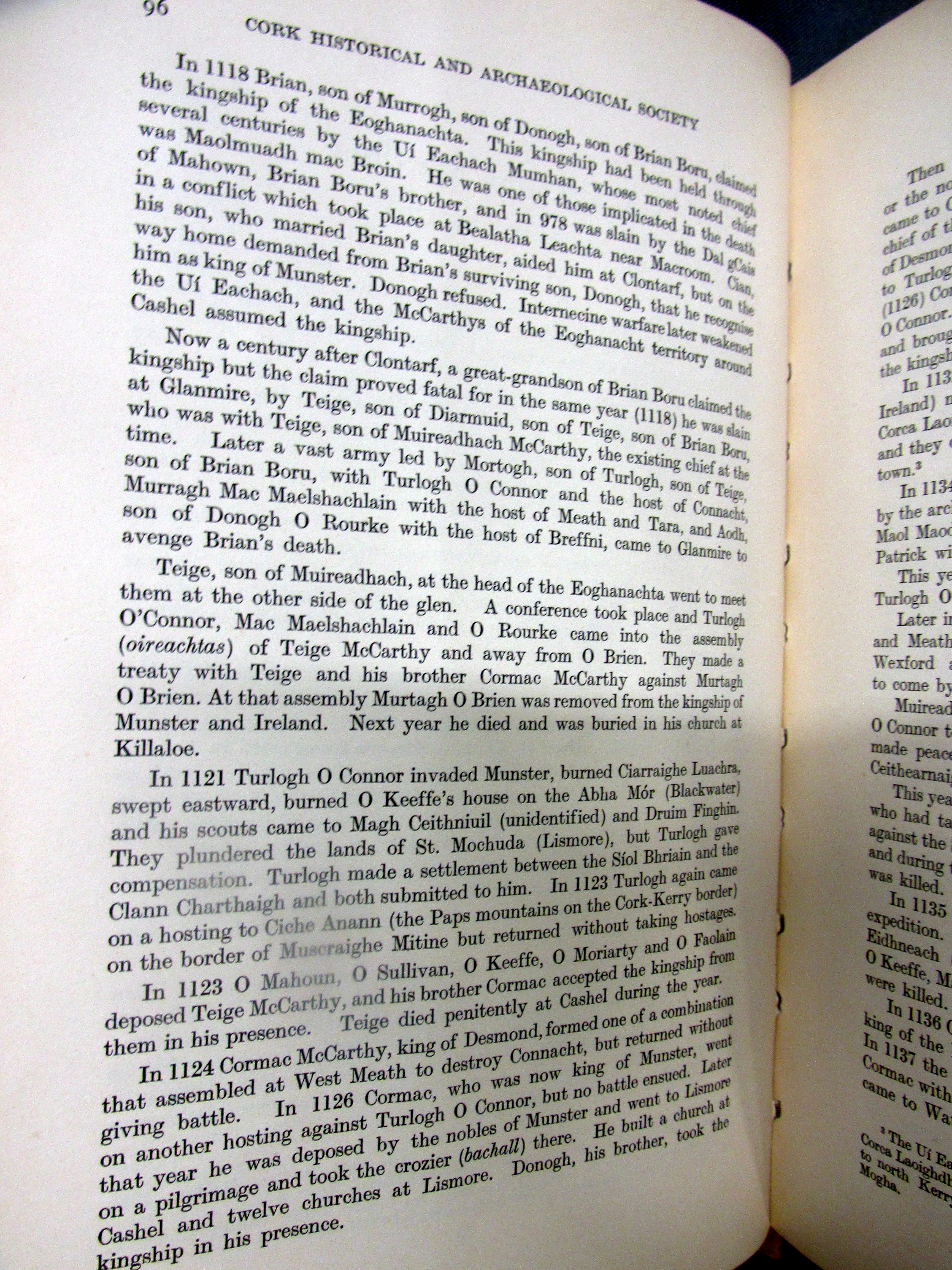 This old Connor O’Mahony with five brothers fought in the Battle of Aughrim in 1691. His five brothers were killed on the field. The O’Mahonys were always great fighters since the time of Brian Boru, and at faction fighting they never met their equals. Before Cromwell’s time and Penal Laws the family was very well off and so powerful that the English determined to drive every one of the name in Cork “to hell or Connaught”.