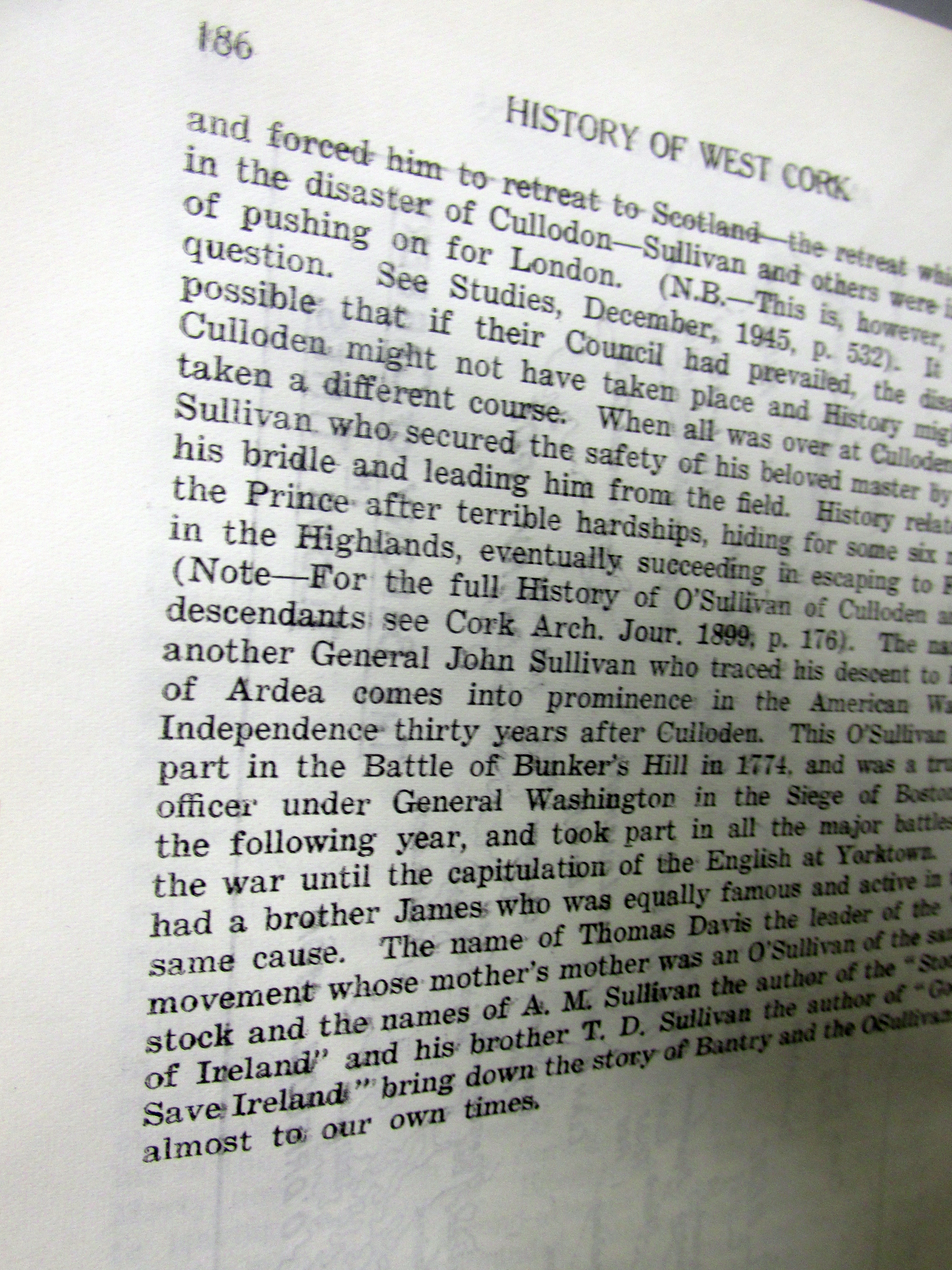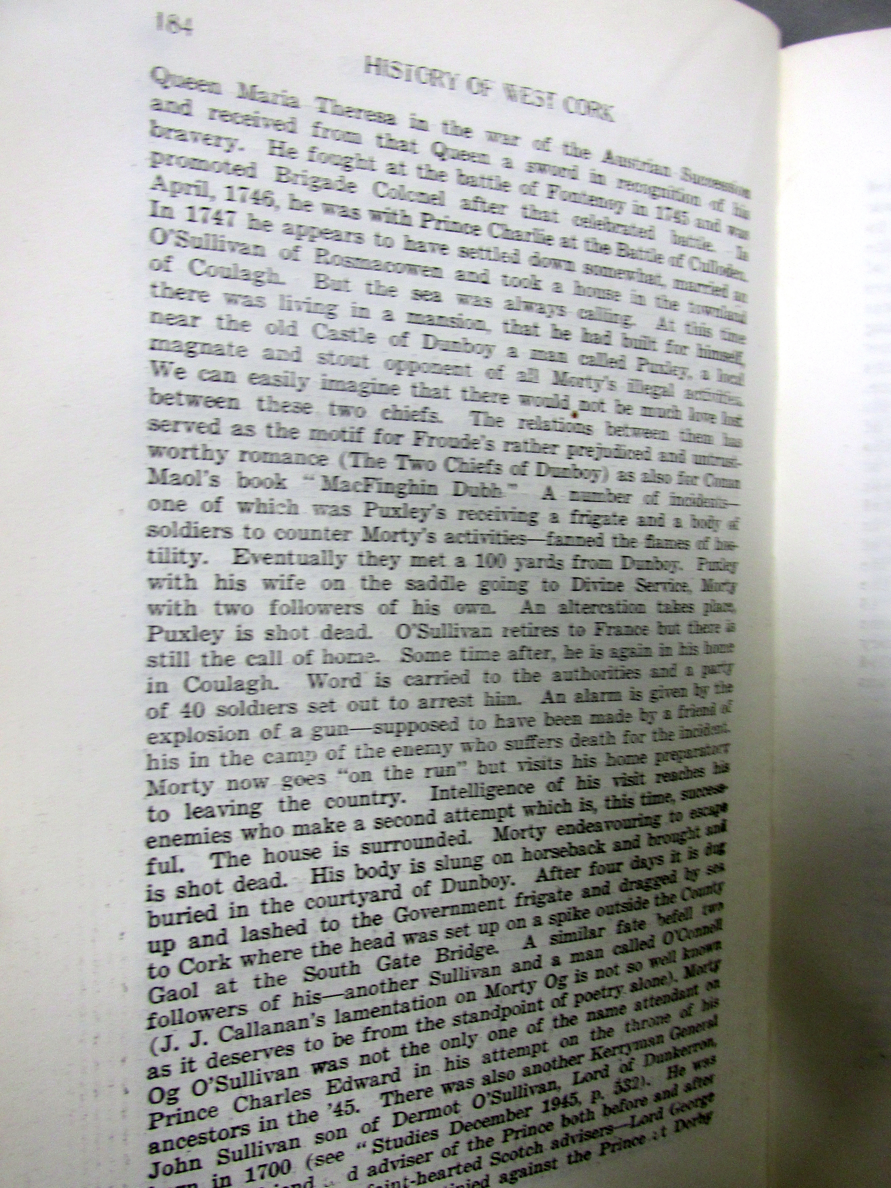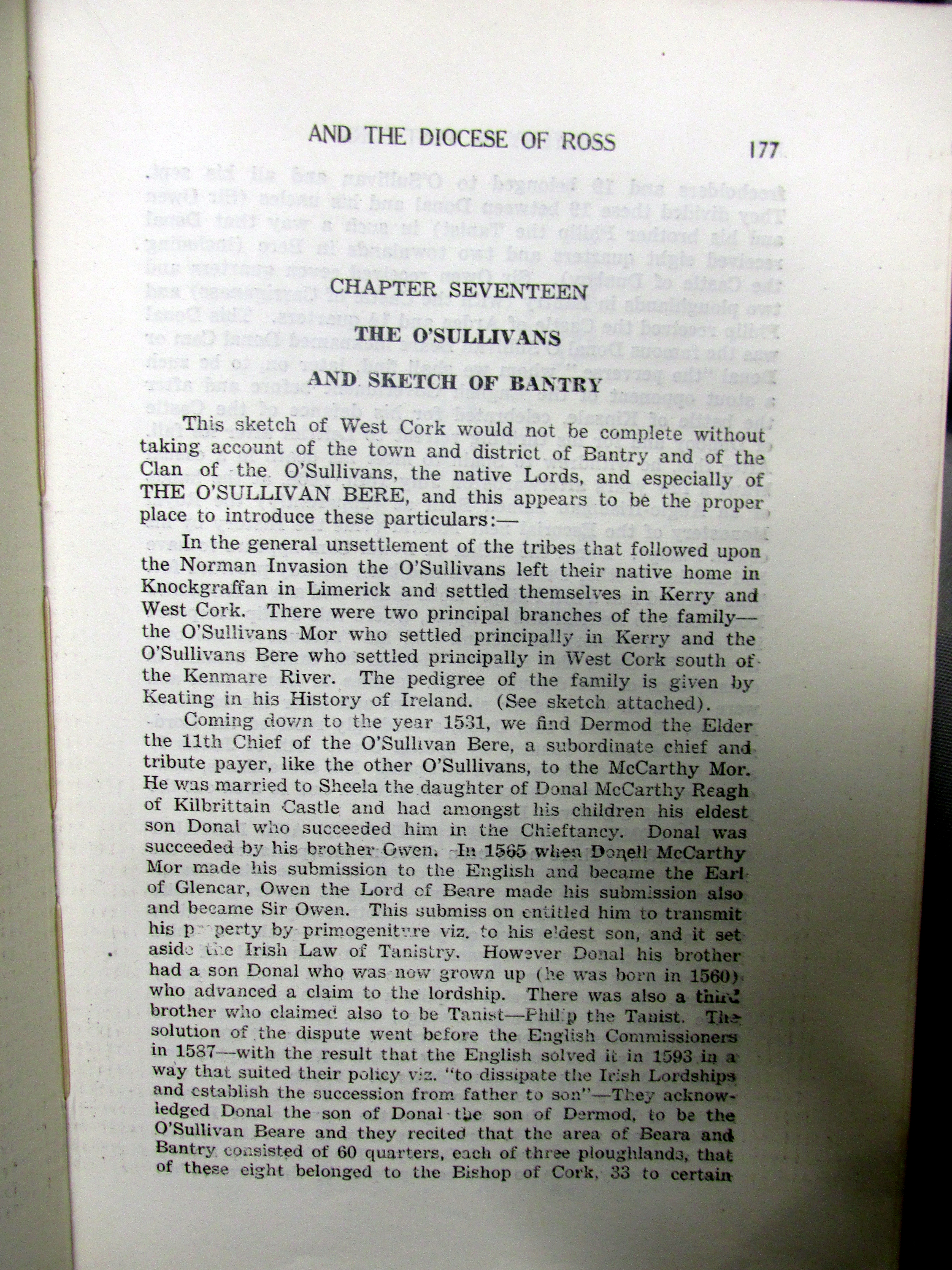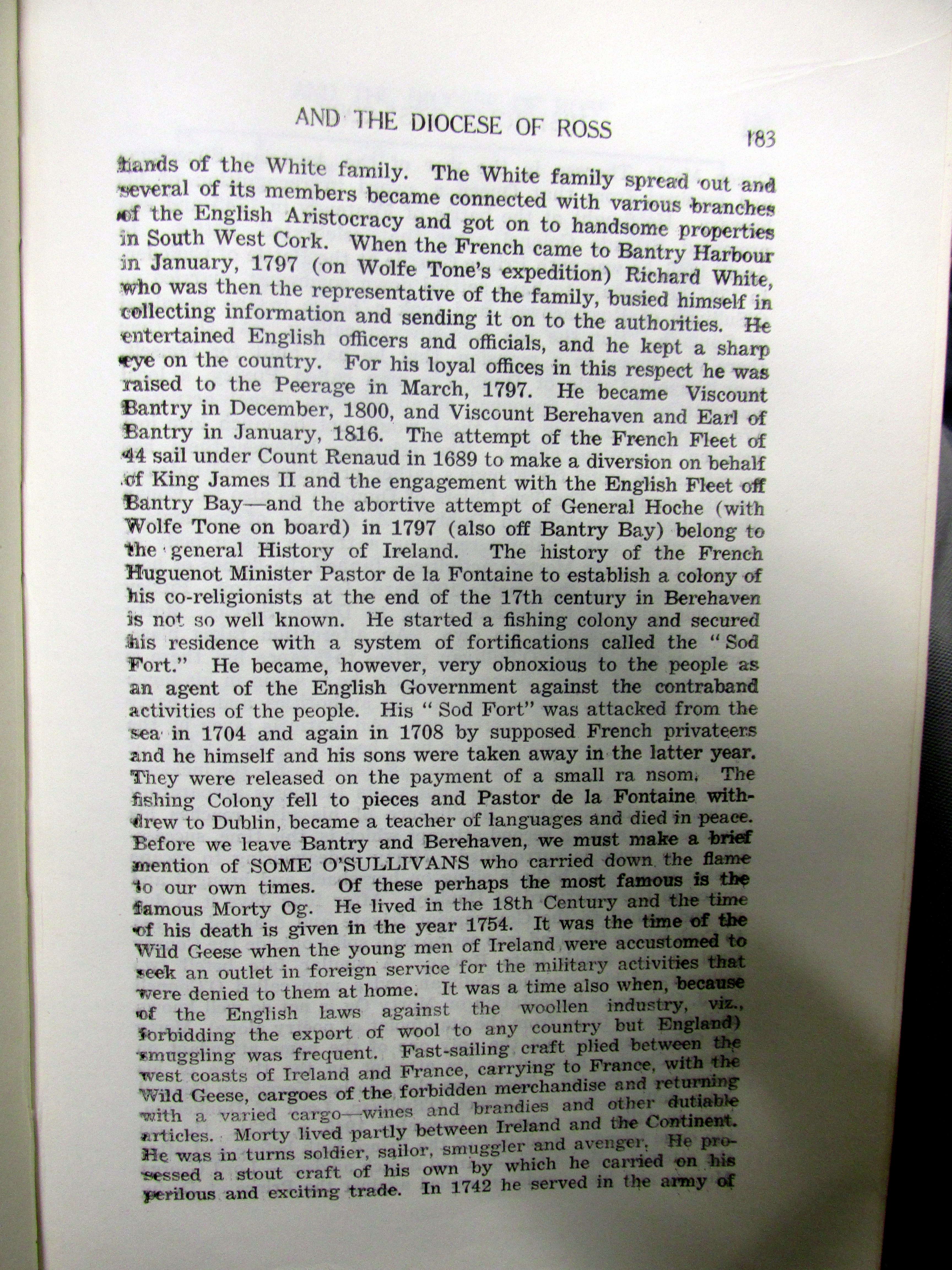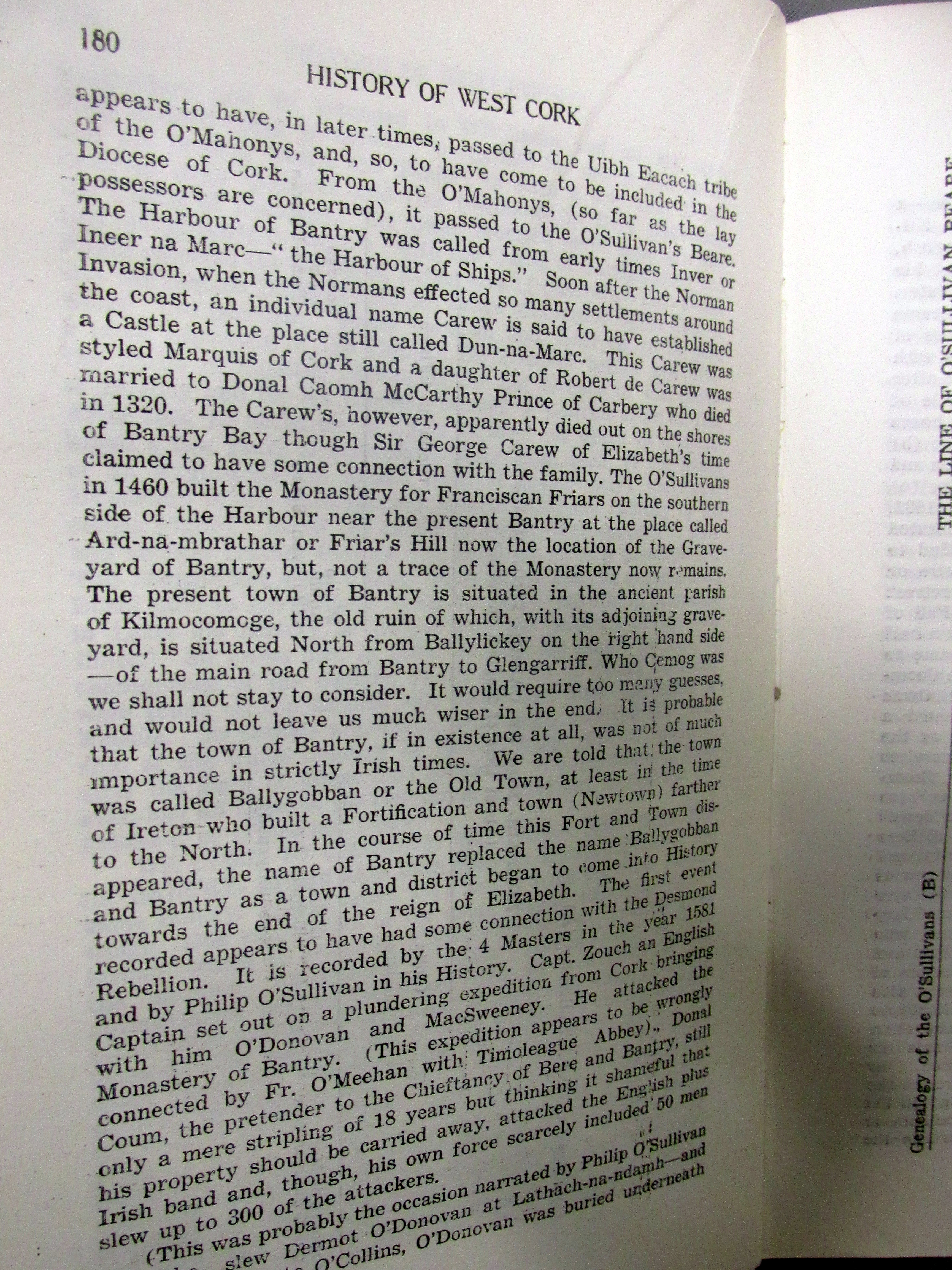 The National Archives in Dublin have two rent books from the Bantry Estate dating from the 1780s (ref MS. 5944 and 5955). These contain details of tenancies and tenants in the Bantry and Beara areas. Quite a numbe of the tenants are of the O’Sullivan family and would be in the category of middle-men.