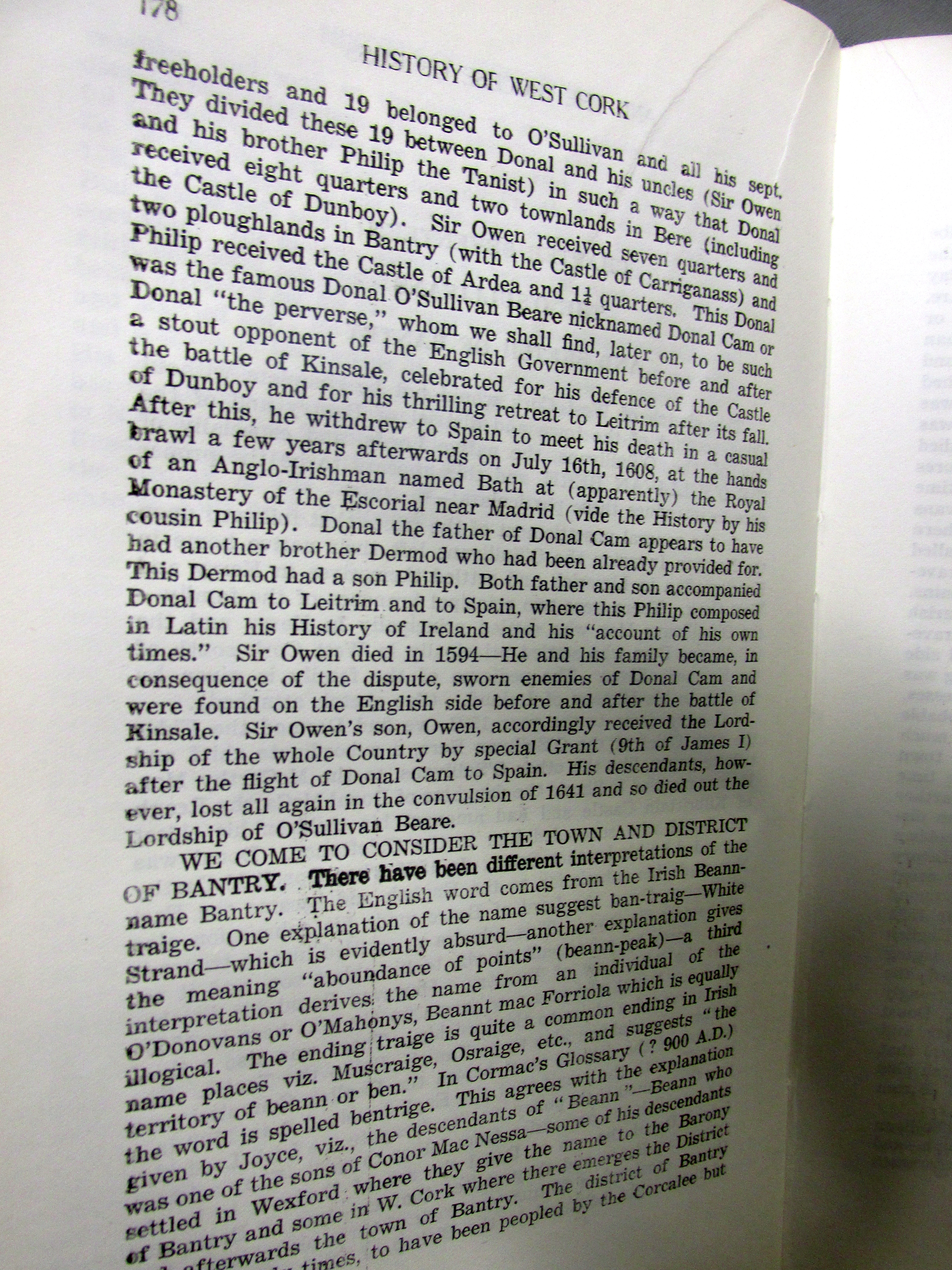 This list comes mainly from the online catalogue of the Bntry House papers held in University College Cork, Boole Library with some from the Paddy O’Keeffe (Bantry businessman and historian) in the Cork Archives.