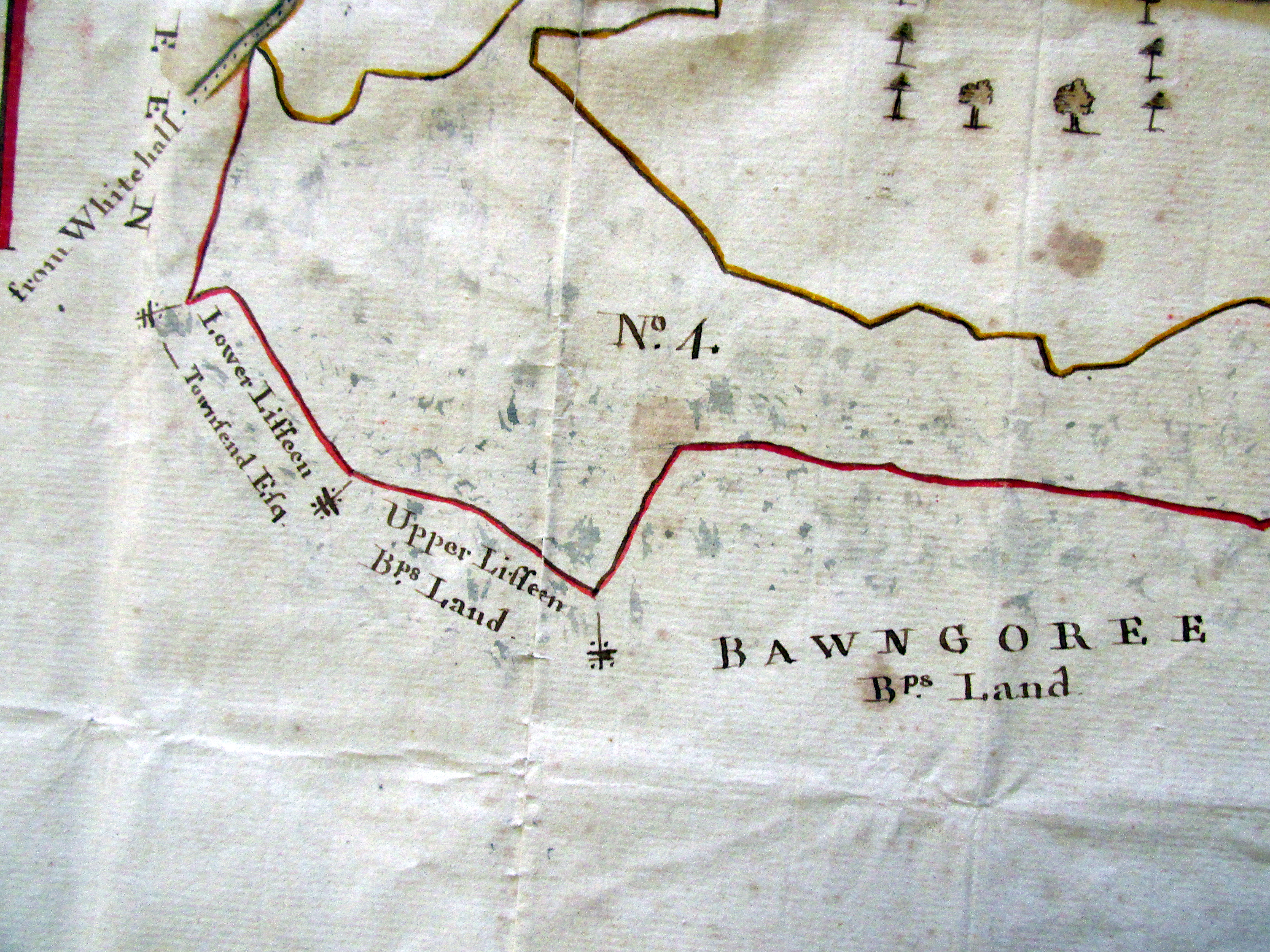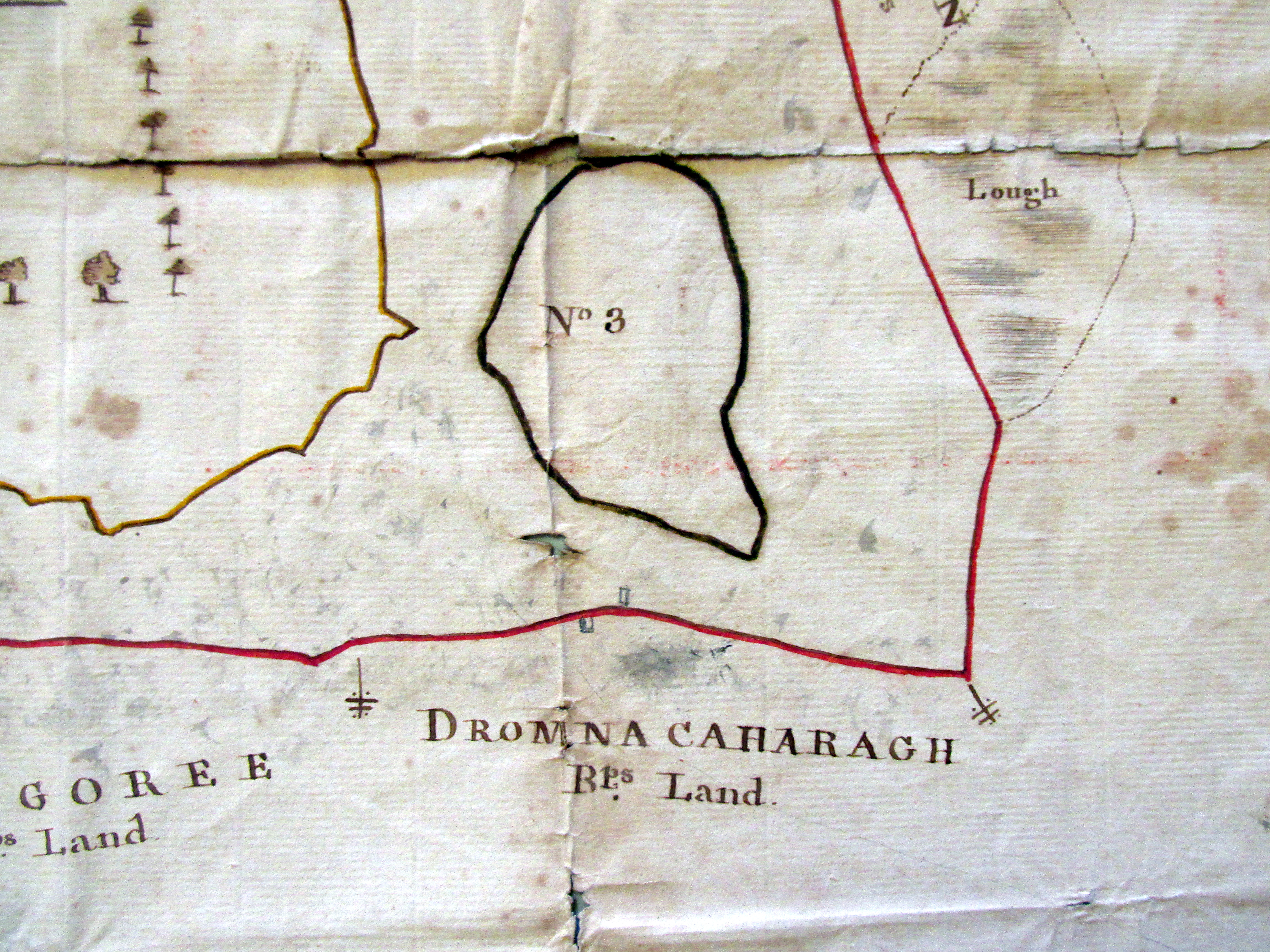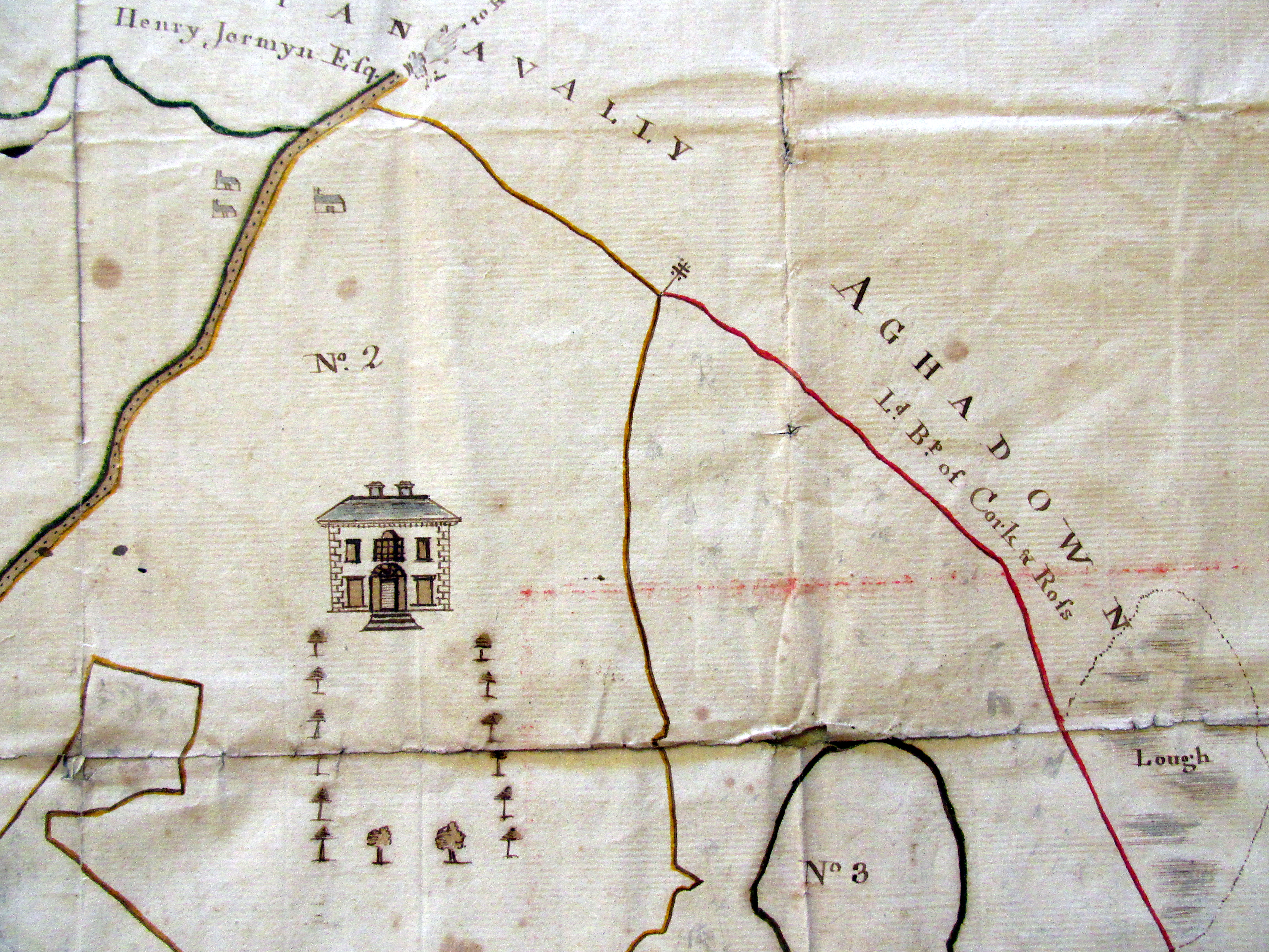 Estate of Henry Jermyn Esq, Aughadown, Skibbereen, West Cork, 1,275 acres, part survey of Killsarlaghta, Aughadown, 1790 by John Molony, Ploughland occupied by Denis Driscoll and Syeey/Gosnell?? 275 acres, showing also Bishop of Cork and Ross holdings at Aughadown, Dromnacaharagh, Upper and Lower Lisheen, Killhilleen, Bawngoree, Whitehall Roaring Water Road, Deed 1788, and Exchequer Bill 1771 from Stephen Warner Lands of 1740, 1710 Deed Warner/Jermyn, Richard Baldwin v Jermyns, Warners, John O’Hea, Deed 1788, and Exchequer Bill 1771 from Stephen Warner Lands at Tullnaeasky, of 1740, Denis Fenn, Various Jermyns, Warners, 1788 Party of Deeds for Minor Children of The O’Donovan, Only child, Catherine, heiress, married Henry Becher Esq., 1805. Party to 1807 pre Marriage Agreement, Elizabeth McCarthy only daughter of Owen, Caheragh to John Woulfe, Coolcrahan