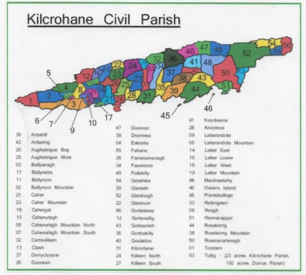 Flor Crowley NT, Behigulane describes farming practices in Dunmanway for small to middling farms which would have been common to Protestant and Catholic farmers from the Famine to the early 1960s. From then on, reclamation, rural electrification and specialisation spelled the end for many of the prctices described.